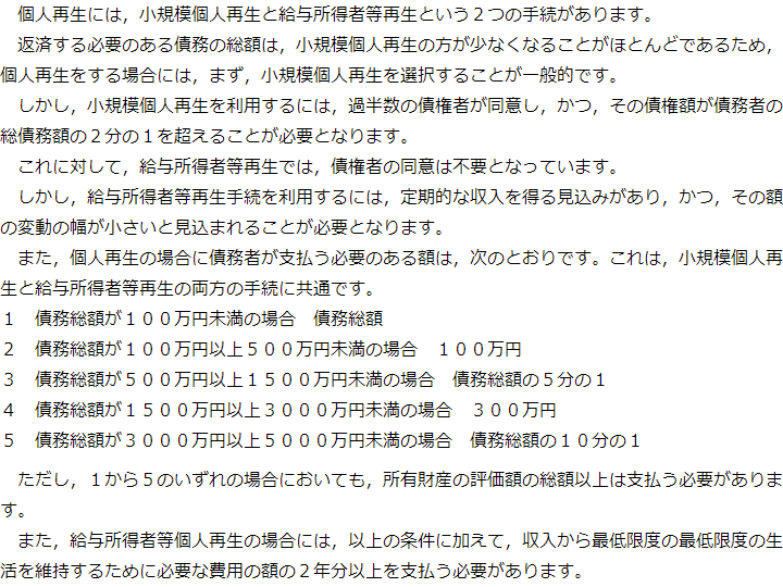 小規模個人再生と給与所得者等再生